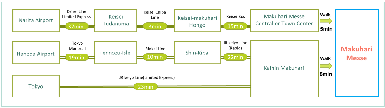 Makuhari Messe is conveniently located from both Narita & Haneda Airports.